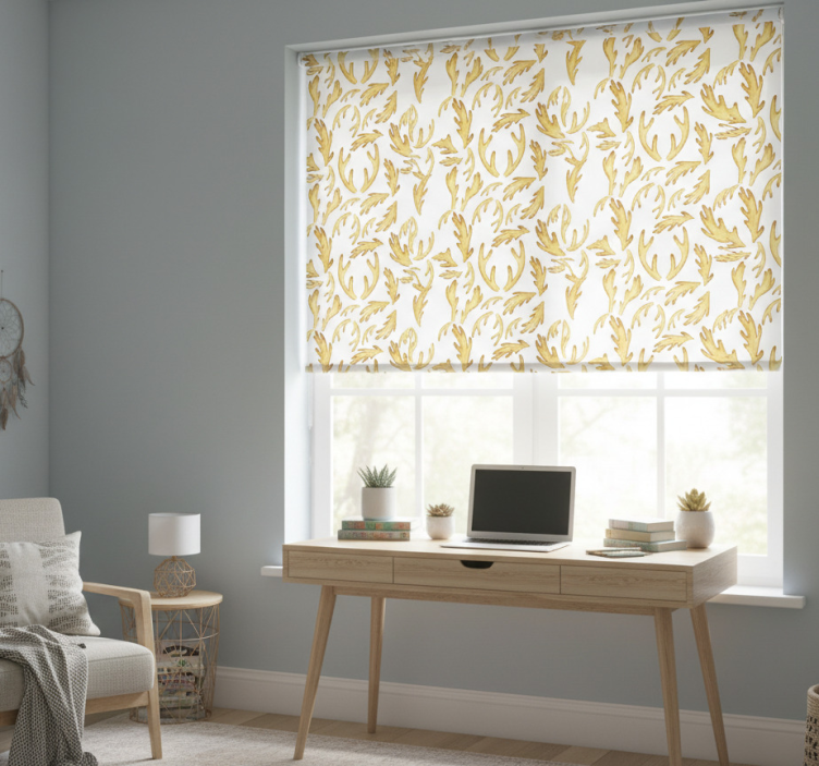 Rollo fenster jugendzimmer mit goldenen boho-rentieren