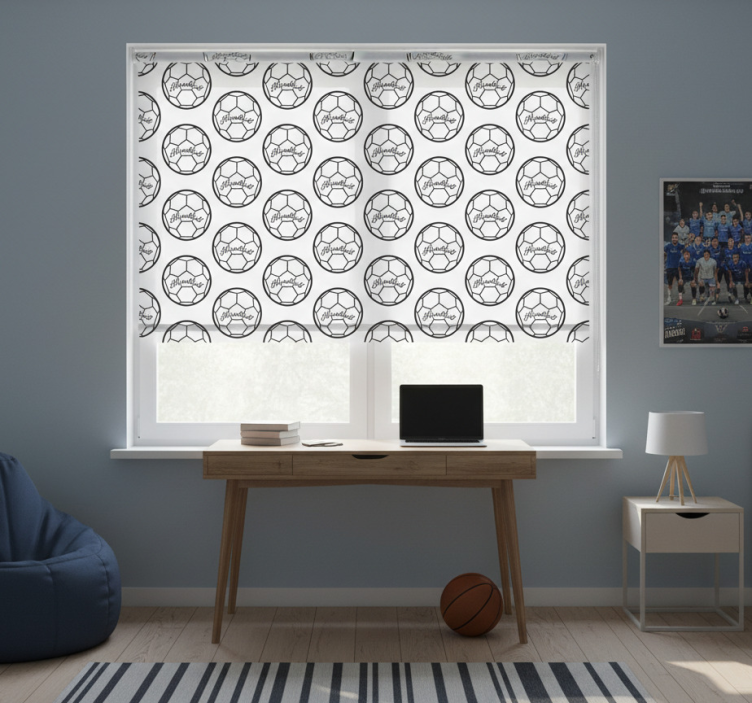 Referenz: E7406Willkommen in der Welt des kreativen Designs mit unserem Rollo Fenster Jugendzimmer mit Handballmuster. Dieses einzigartige Rollo strahlt Dynamik und Sportlichkeit aus und bringt mit seinem lebendigen Handballmuster frischen Wind in jedes Jugendzimmer. Die Farben und Formen des Designs fügen sich harmonisch in die Raumgestaltung ein und schaffen eine einladende Atmosphäre, die die Leidenschaft für Sport und Bewegung widerspiegelt.