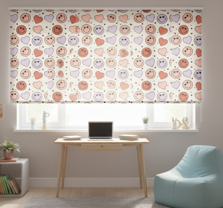 Rollo fenster jugendzimmer mit liebe und herzsmileys