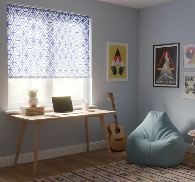 Rollo fenster jugendzimmer mit linearem muster in blau