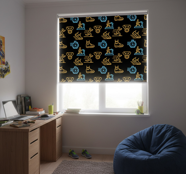 Rollo fenster jugendzimmer mit neonfarbigen icons