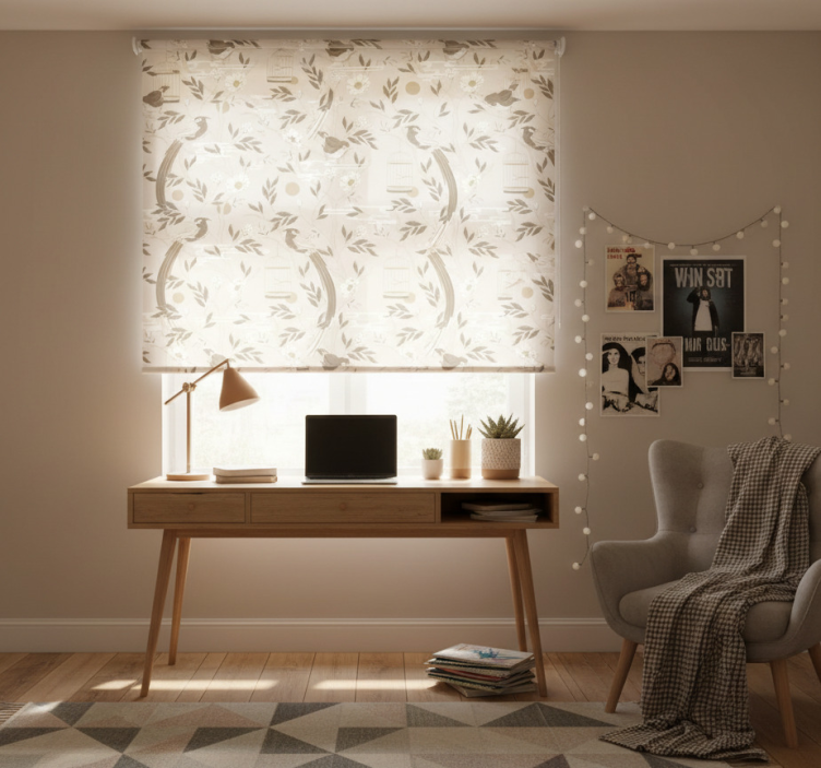 Rollo fenster jugendzimmer mit nostalgischen blättern