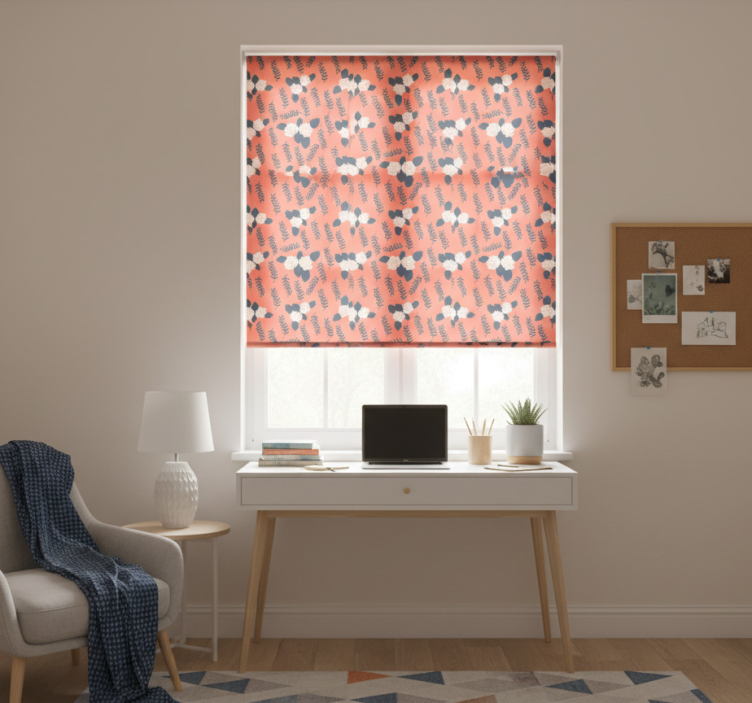 Rollo fenster jugendzimmer mit orangefarbenem rosenmuster