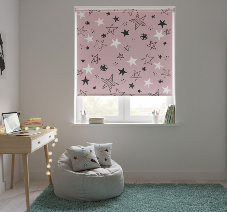 Referenz: E7588Das Rollo Fenster Jugendzimmer mit pinken Sternen vereint fröhliches Design und praktische Funktionalität. Mit einem bezaubernden Muster aus pinken Sternen auf einem zarten Hintergrund bringt es die Fantasie und Kreativität in jedes Jugendzimmer. Die harmonische Farbgestaltung sorgt dafür, dass der Raum lebendig und einladend wirkt und gleichzeitig eine gemütliche Atmosphäre schafft. Dieses Rollo ist nicht nur ein stilvolles Accessoire, sondern auch eine hervorragende Lösung, um den Raum vor direkter Sonneneinstrahlung zu schützen und die Privatsphäre zu wahren.