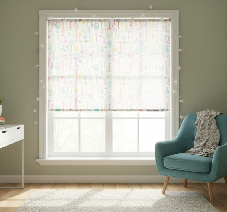 Rollo fenster jugendzimmer mit schlüsselmotiv