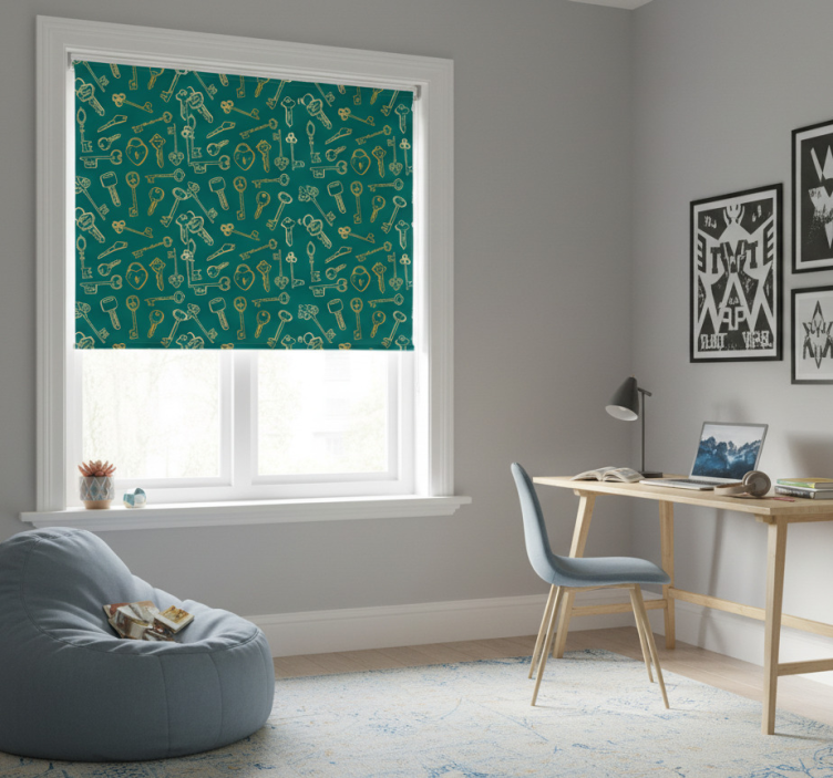 Rollo fenster jugendzimmer mit schlüsseln und schlössern