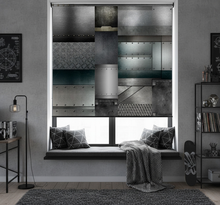 Rollo fenster jugendzimmer muster in metall schwarz blocks