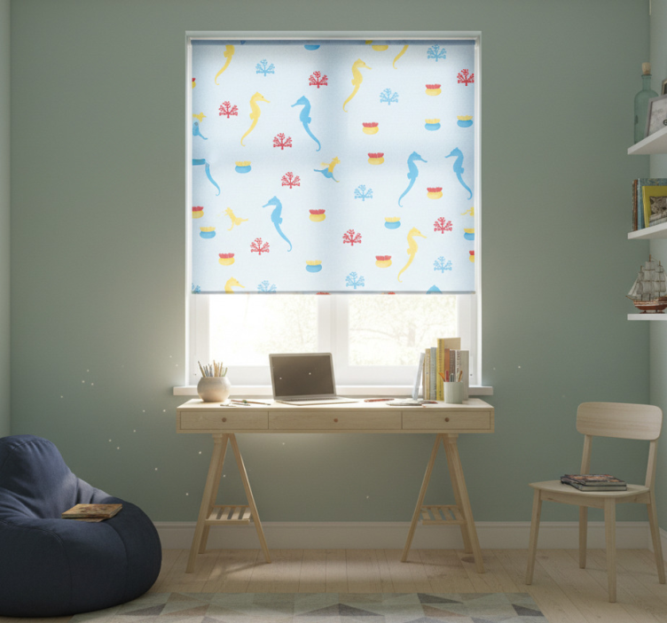 Rollo fenster jugendzimmer seepferdchen und koralle
