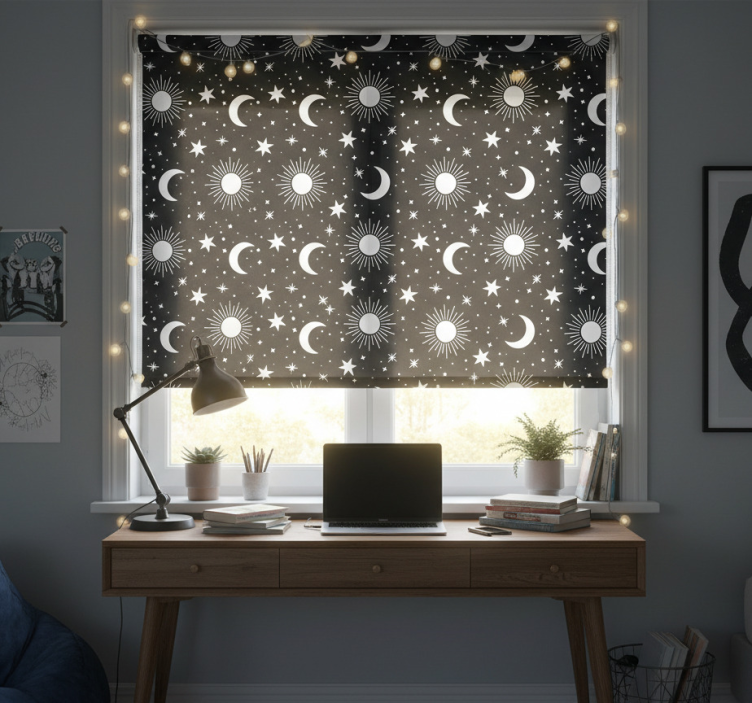 Rollo fenster jugendzimmer weiße sterne und monde