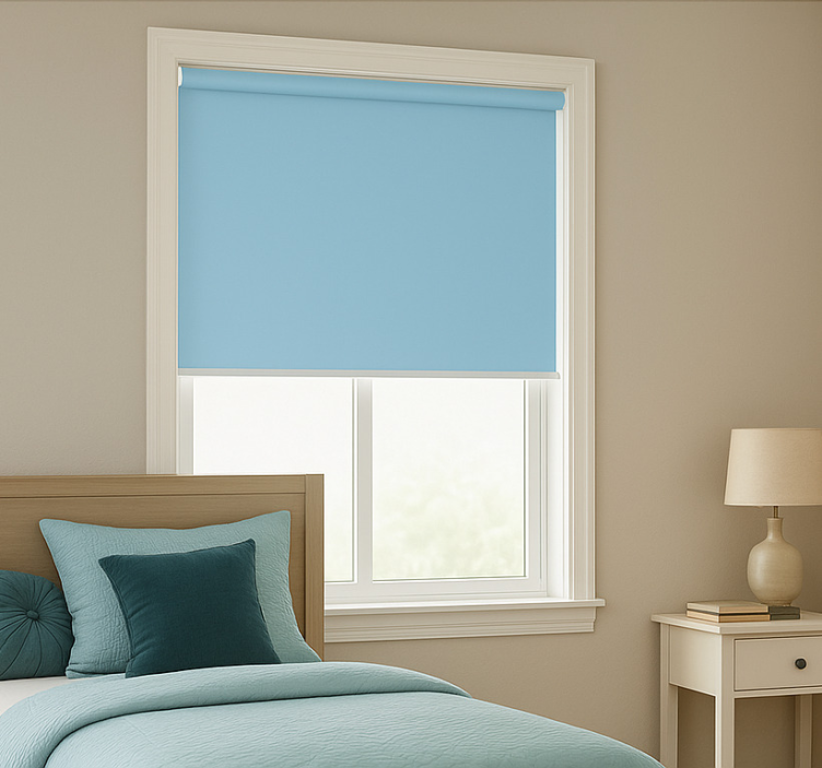 Rollo Fenster Jugenzimmer himmelblaue farbe