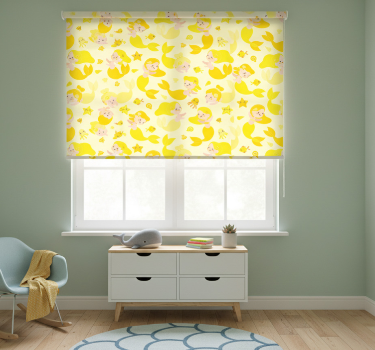 Rollo fenster kinderzimmer gelbe lächelnde meerjungfrau