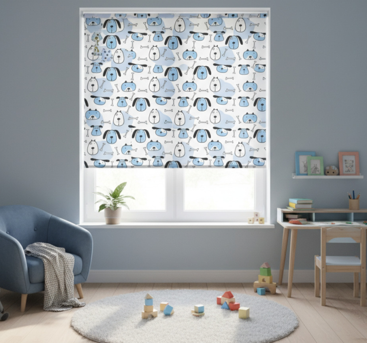 Rollo fenster kinderzimmer mit blauem hundemuster