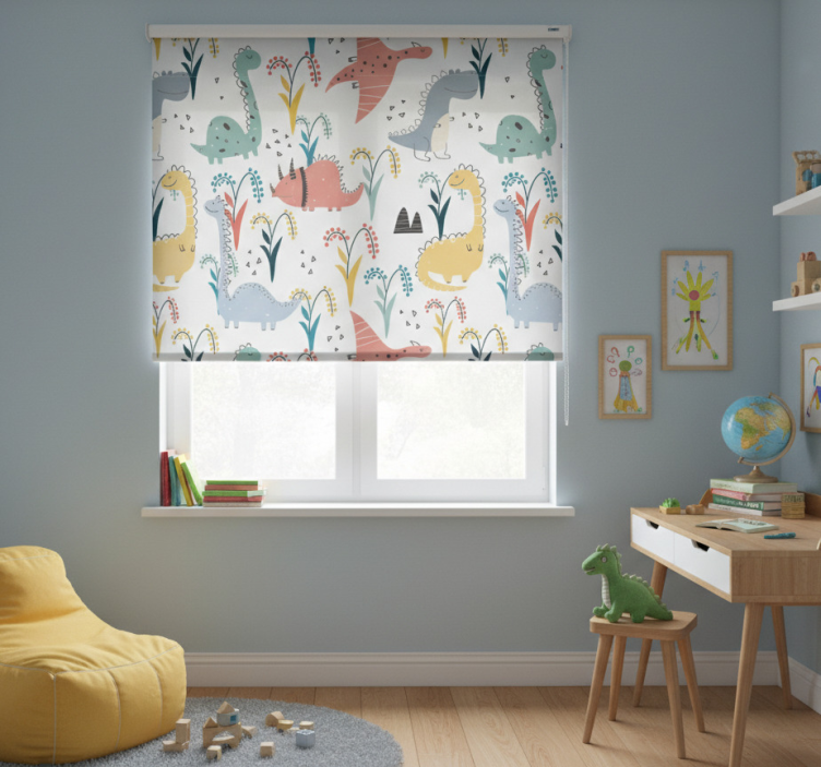 Rollo fenster kinderzimmer dinosaurier und bäume