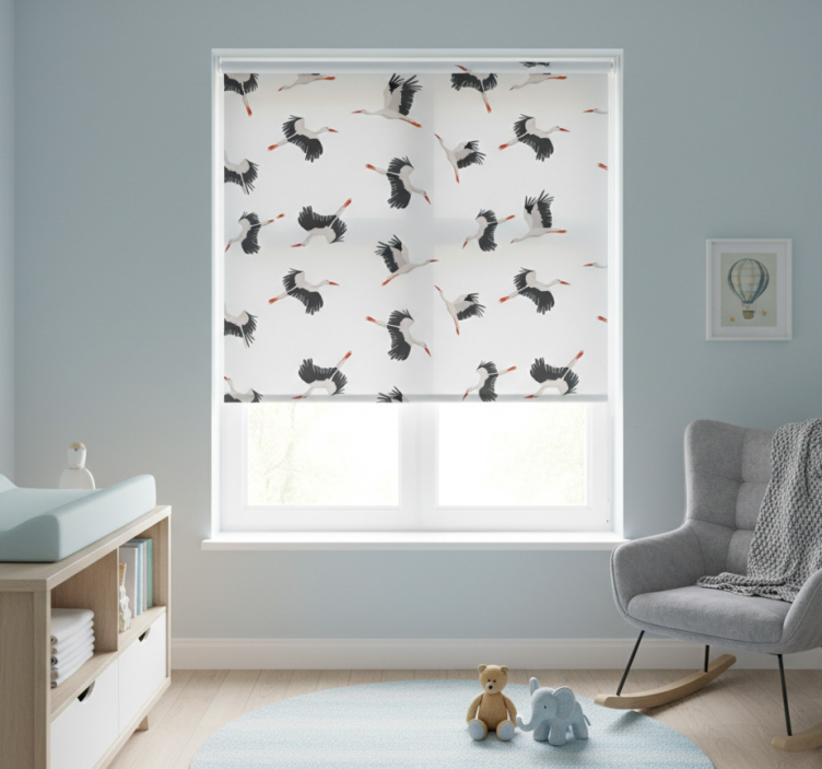 Rollo fenster kinderzimmer mit fliegenden störchen