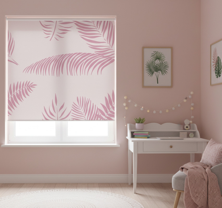 Rollo fenster rosa große palmenblätter