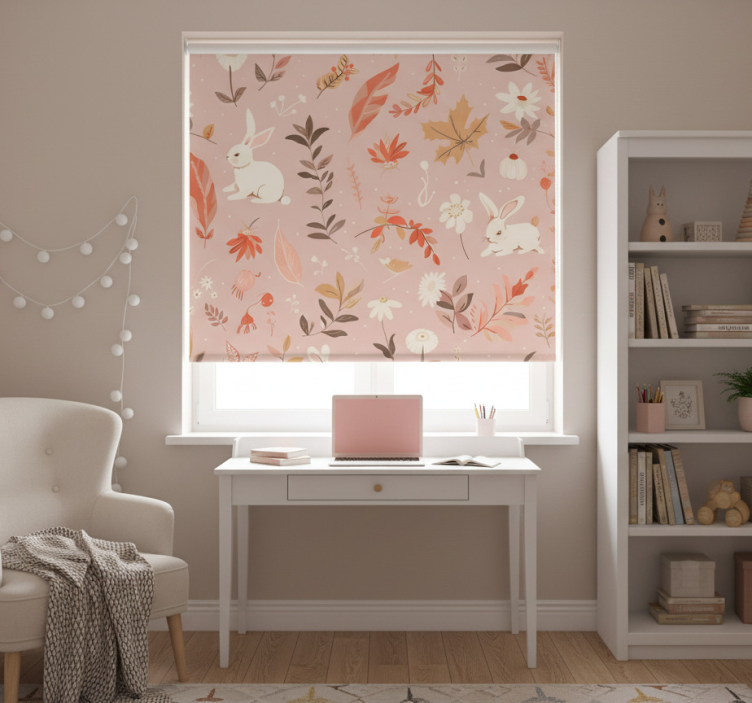 Rollo fenster rosa im design herbstwald