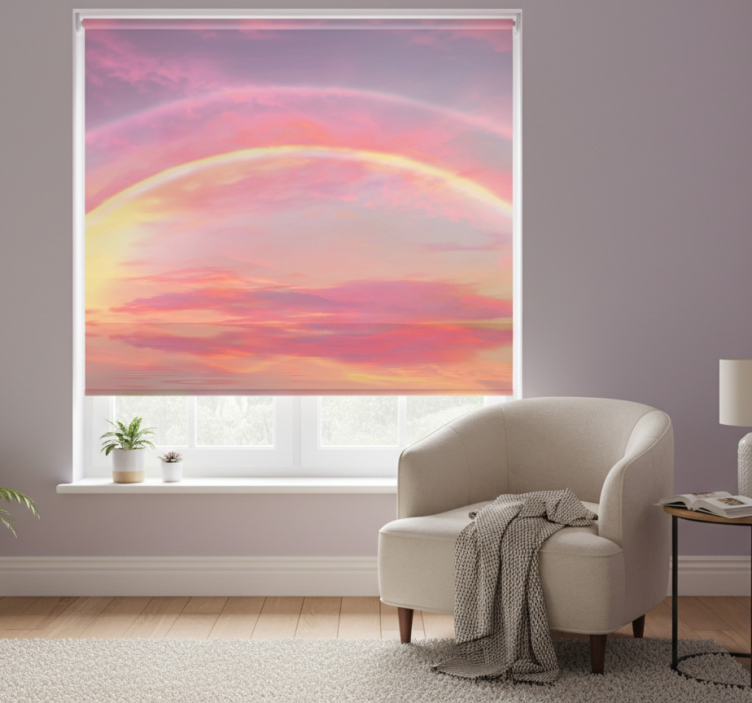 Referenz: E8839Entdecken Sie unser bezauberndes Rollo Fenster Rosa pinker Himmel mit Regenbogen, das mit seinem traumhaften Design jeden Raum in eine Oase der Farben und des Lichtes verwandelt. Mit einem atemberaubenden rosa Himmel und einem fröhlichen Regenbogen bringt dieses Rollo Freude und Leichtigkeit in Ihr Zuhause. Die harmonische Farbgebung und die verspielten Muster schaffen eine einladende Atmosphäre, die sowohl Kinder als auch Erwachsene begeistert.