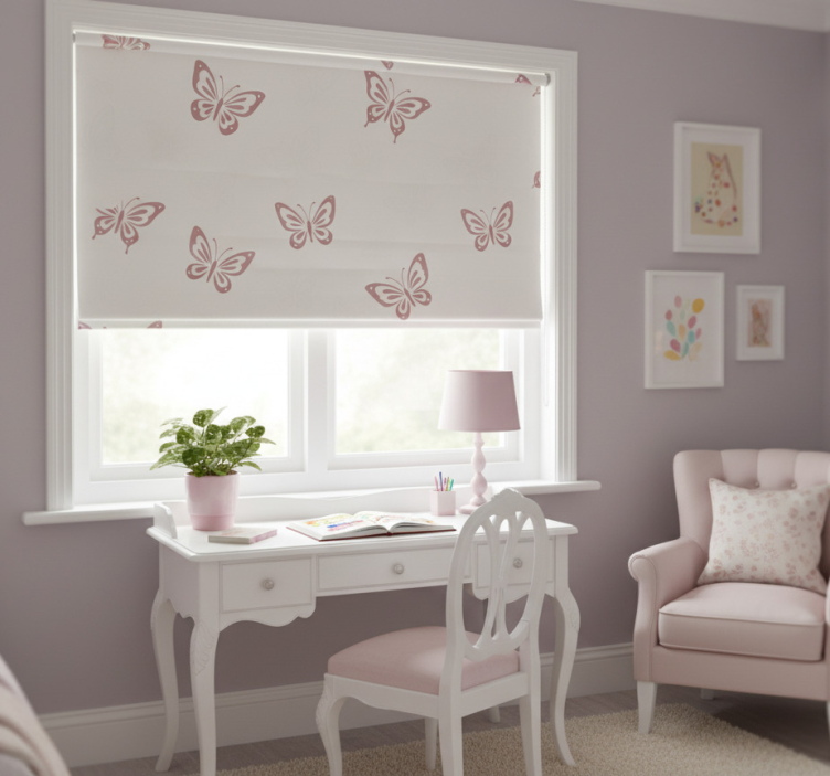 Referenz: E8194Entdecken Sie das bezaubernde Rollo Fenster Rosa verspielt flatternder Schmetterling, das mit seinem lebhaften Design jeden Raum zum Strahlen bringt. Die zarten Schmetterlingsmotive tanzen über eine sanfte rosa Basis und schaffen eine fröhliche Atmosphäre. Dieses Rollo ist nicht nur ein dekoratives Element, sondern erfüllt auch praktische Funktionen, indem es den Raum vor direkter Sonneneinstrahlung schützt und gleichzeitig eine angenehme Privatsphäre bietet.