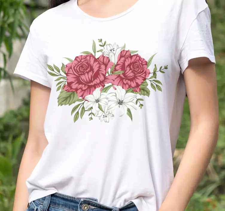 Referenz: T4320Dieses Design zeigt blühende Rosen und Lilien, die Schönheit und Eleganz symbolisieren. Die lebhaften Farben stechen hervor und schaffen eine auffällige visuelle Anziehungskraft. Perfekt für die Freizeit, zeigt es eine harmonische Mischung aus floralen Elementen und ist eine ideale Wahl für jeden, der eine frische, aufmunternde Stimmung vermitteln möchte.
