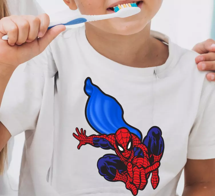 Entdecken Sie das Kinder T Shirt Spiderheld Abenteuer, das mit seinem aufregenden Design Kinderherzen im Sturm erobert! Das lebendige Shirt zeigt eine fesselnde Comic-Illustration eines mutigen Helden mit einem blauen Umhang und einer verspielten Spinne, die Abenteuer und Spaß symbolisiert. Ideal für kleine Entdecker, die Action und Freude lieben!