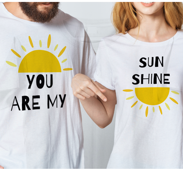 Referenz: T5107Dieses charmante Design zeigt ein Paar, das passende Oberteile trägt, die mit fröhlichen Sonnenmotiven und warmen, liebevollen Phrasen verziert sind. Die sonnigen Farben wecken Gefühle von Freude und Verbindung und machen es zu einer perfekten Wahl, um Liebe auf eine bezaubernde Weise auszudrücken.