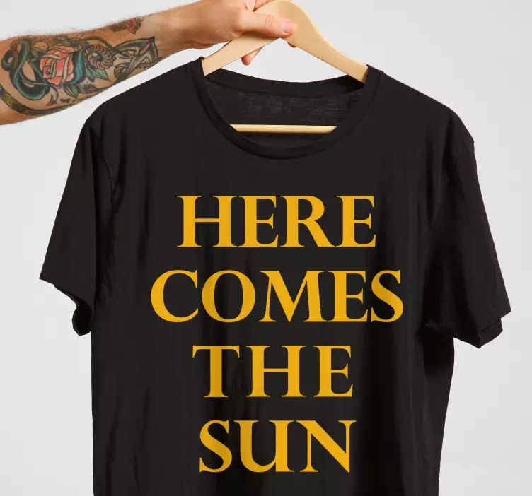 Entdecken Sie unser Original T Shirt hier kommt die sonne, das mit einem einzigartigen Design begeistert. Die Kombination aus deutlichem Text, einer strahlenden Sonne und musikalischen Elementen spiegelt einen stilvollen und modernen Look wider. In leuchtendem Schwarz und Gelb sorgt dieses Shirt für gute Laune und ist ein motivierendes Statement für jeden Tag!