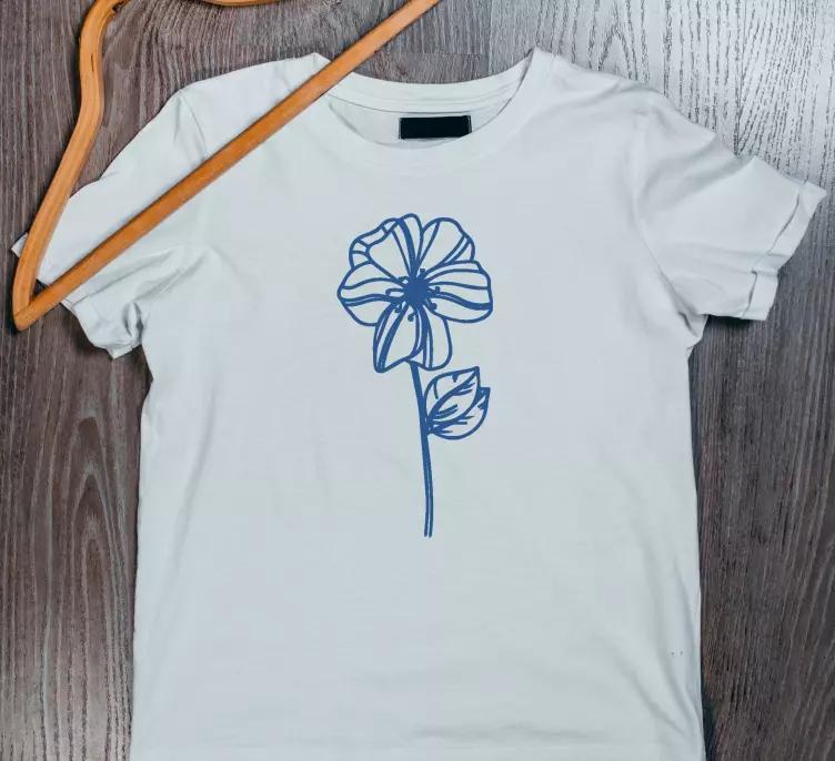 Referenz: T4406Dieses stilvolle Kleidungsstück verfügt über ein minimalistisches Blumenmuster, das eine zarte Blüte mit einem eleganten Stängel und Blatt zeigt. Der elegante blaue Umriss verleiht einen Hauch von Raffinesse und macht es perfekt für die Freizeit.