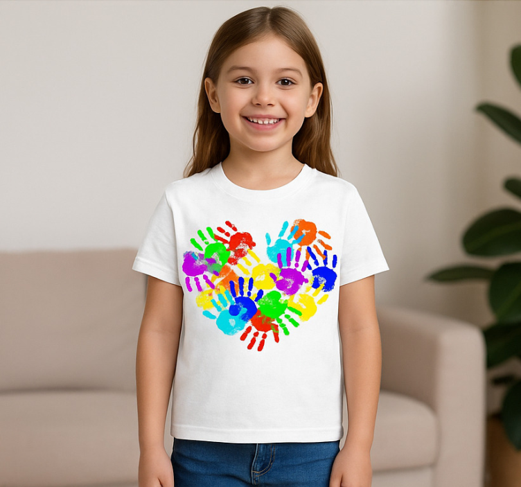 Original t shirt mit herzförmigen handabdrücken