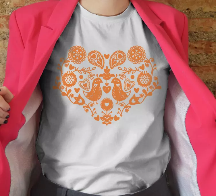 Das Original T-Shirt mit Herzmuster Vögel verbindet Mode mit einem einzigartigen Design, das Geschichten erzählt und Emotionen weckt. Es ist ideal für alle, die ihren individuellen Stil unterstreichen möchten. Tragen Sie es bei besonderen Anlässen oder im Alltag, um Ihre Liebe zur Natur und zur Folklore zu zeigen. Dieses T-Shirt ist mehr als nur ein Kleidungsstück; es ist ein Ausdruck Ihrer Persönlichkeit!