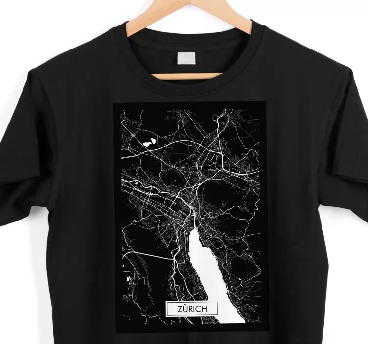 Information T-shirt Karte von Zürich und vom Zürichsee