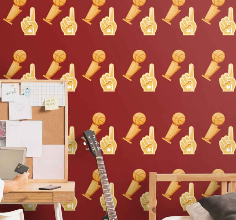 Das Design dieser Tapete Kunst sportliches gestenmotiv ist ein grafischer Ausdruck von Sport, Basketball, Trophäe, Fingerzeichen, Muster, Geste, Schaumstofffinger und Sportthema. Es ist eine einzigartige Möglichkeit, den Raum zu dekorieren und eine lebendige Atmosphäre zu schaffen!