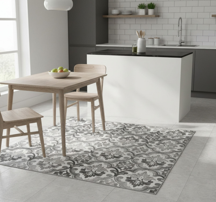 Der Vinyl Teppich Küche ist die perfekte Wahl, um Ihrer Küche einen Hauch von Eleganz zu verleihen. Mit seinem stilvollen Graustufen-Damast-Design fügt er sich harmonisch in jede Einrichtung ein und schafft eine einladende Atmosphäre. Darüber hinaus ist dieser Teppich pflegeleicht und bietet eine hohe Langlebigkeit, sodass Sie lange Freude daran haben werden. Investieren Sie in diesen Vinyl Teppich Küche Graustufen Damast-Teppich, um Ihre Küche optisch aufzuwerten!