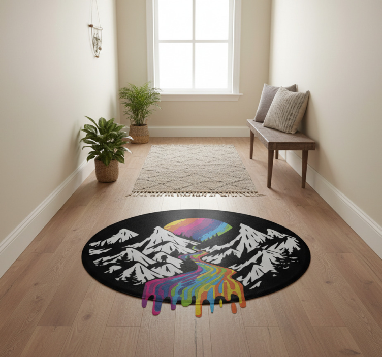 Referenz: R21953Entdecken Sie den faszinierenden Vinyl Teppich Natur Regenbogen Berglandschaft, der mit seinem lebendigen Design die Schönheit der Natur in Ihr Zuhause bringt. Die harmonischen Regenbogenfarben verschmelzen mit der majestätischen Berglandschaft und schaffen eine einladende Atmosphäre, die sowohl beruhigend als auch inspirierend wirkt. Egal ob im Wohnzimmer, Schlafzimmer oder Flur, dieser Teppich wird zum echten Blickfang und verleiht jedem Raum eine besondere Note!