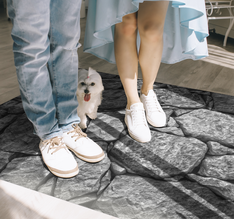 Entdecken Sie unseren Vinyl Teppich Steinoptik realistisches graues muster, der mit einem atemberaubenden Design überzeugt. Die grafische Darstellung zeigt eine harmonische Anordnung von Steinen und Felsen in verschiedenen Graustufen, was dem Teppich eine natürliche und gleichzeitig moderne Atmosphäre verleiht. Die hochwertige Textur und die realistische Fotografie machen diesen Teppich zu einem echten Blickfang in jedem Raum.